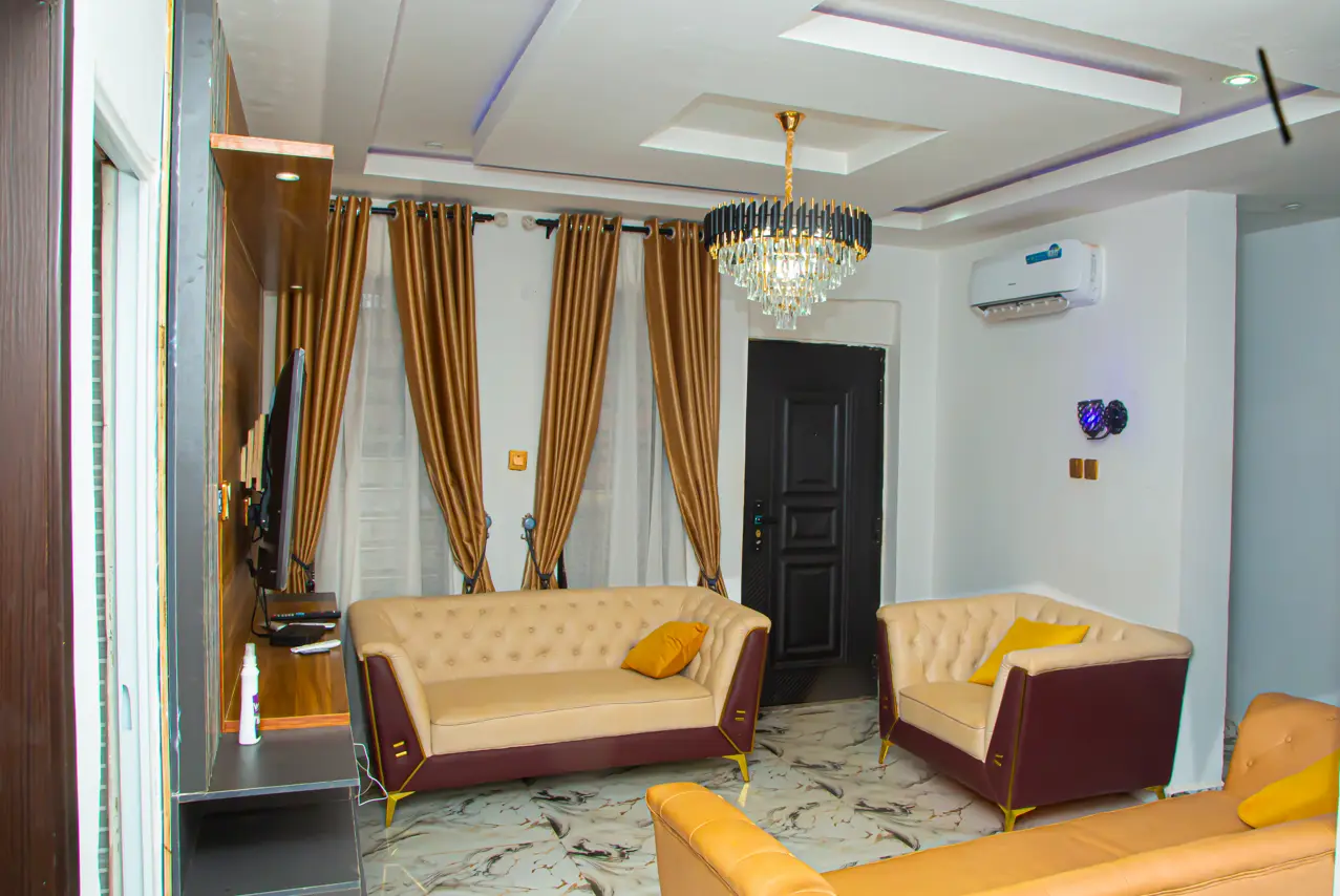 A Modern Parlour: The sitting room is already set up with everything needed for a standard, modern lifestyle. It is cozy, stylish, and ready for you to sit back and relax.