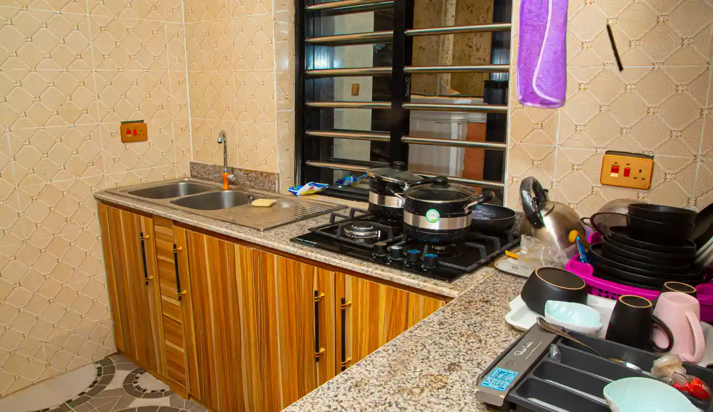 Fully Stocked Kitchen: You won’t spend a penny on kitchen tools! This kitchen comes with all the equipment already inside. From cooking to cleaning, everything is ready for your first meal.